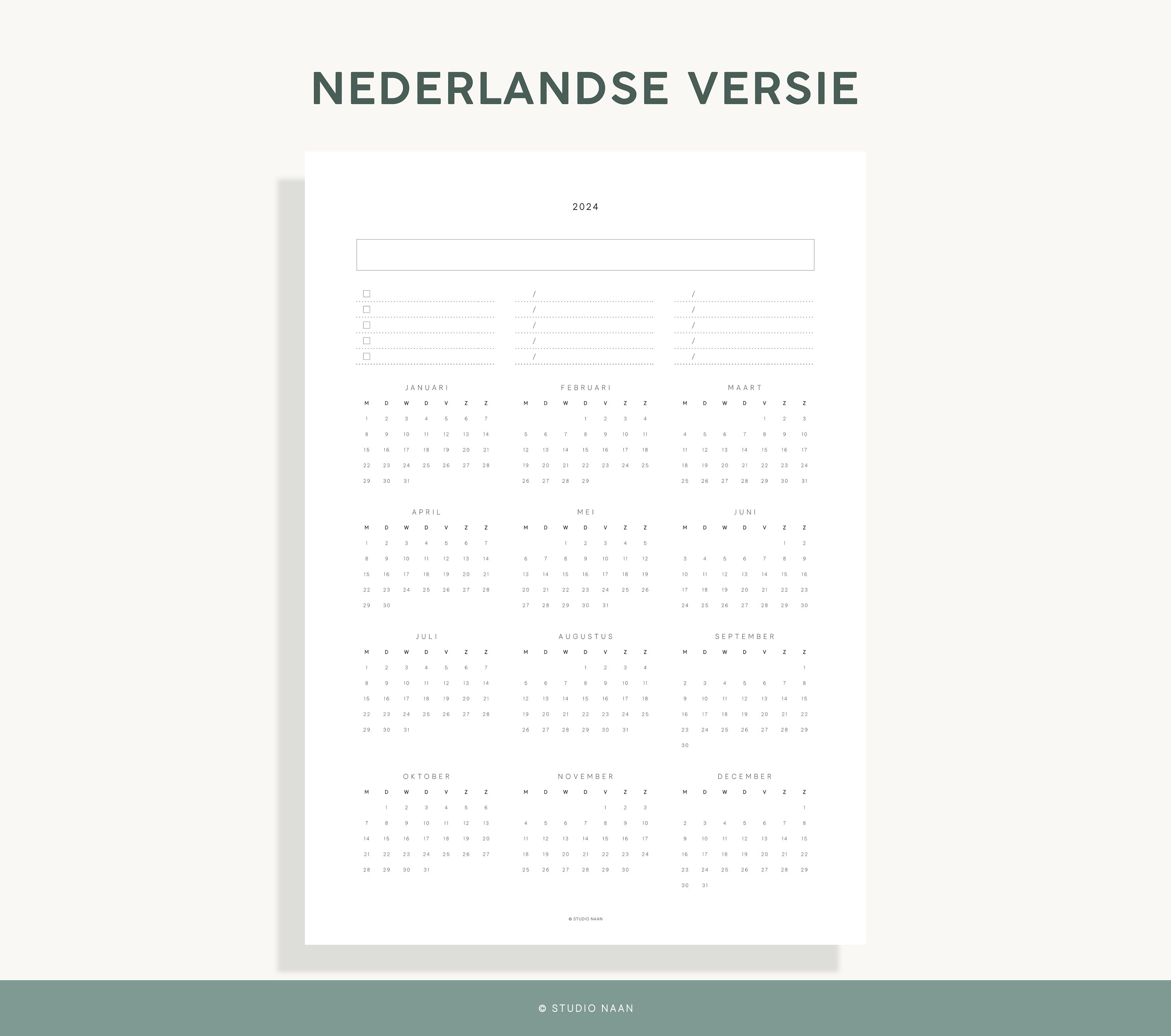 2024 Yearly Printable Calendar (PDF Files Included) Etsy