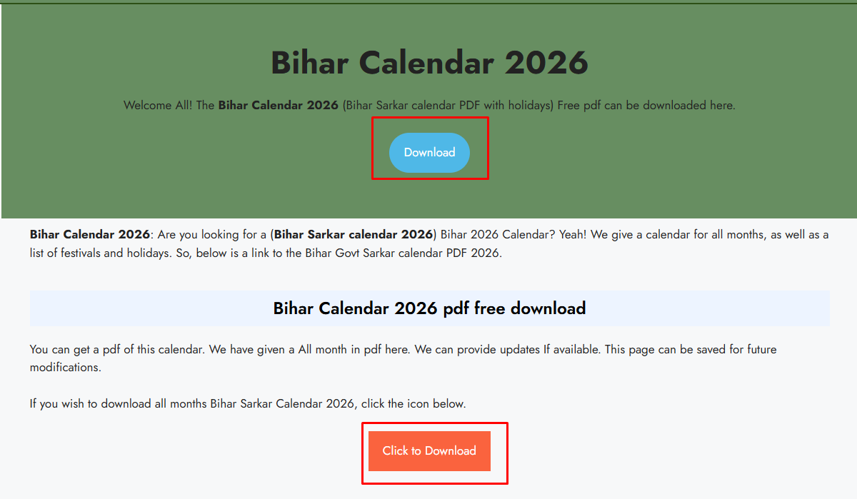 Bihar Calendar 2026: Bihar Sarkar calendar PDF Free Download 2026