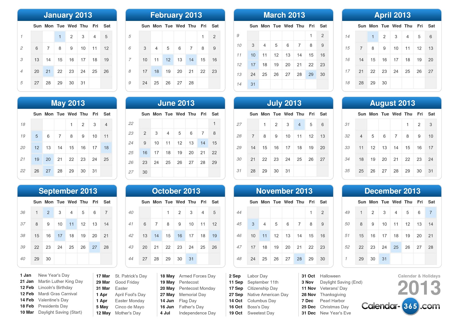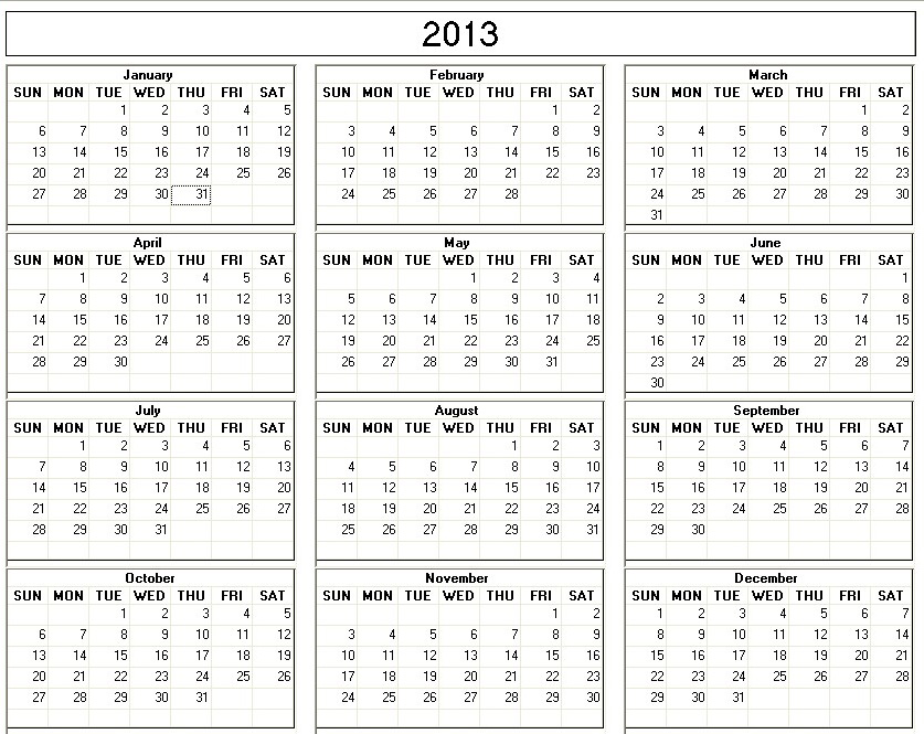 Calender For 2013