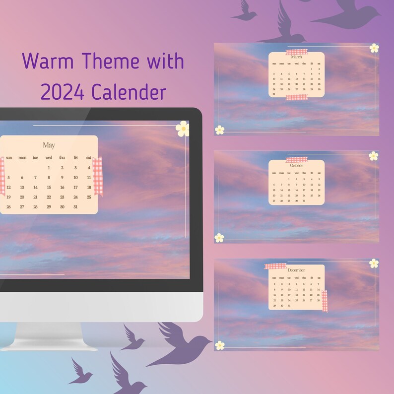 2024 Calender Desktop Wallpaper With Warm Theme Etsy