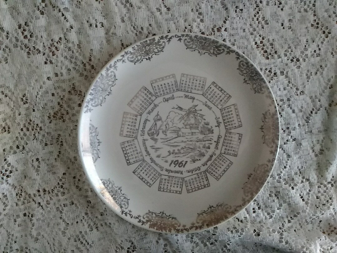 A 1961 Calender Windmill Plate in Gold Design by Taylor Smith Taylor