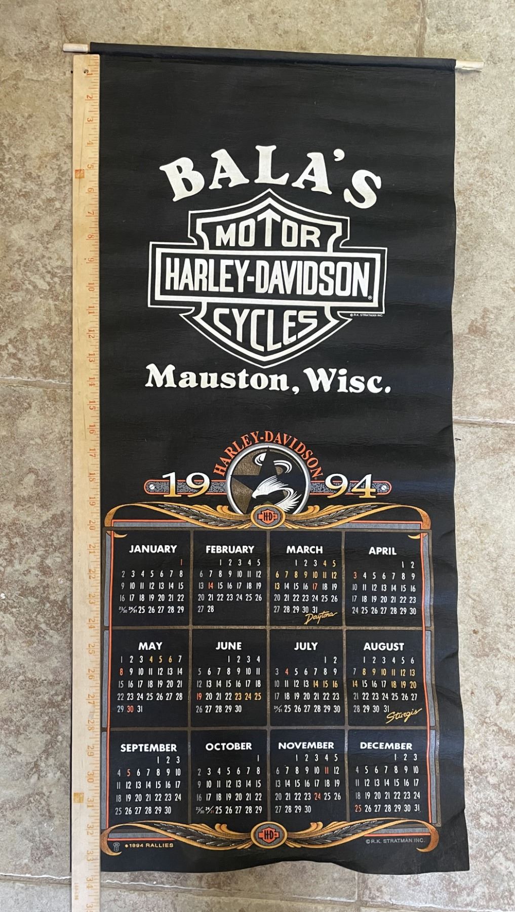 Fabric Harley Davidson Calender 1994 Wall Hanging