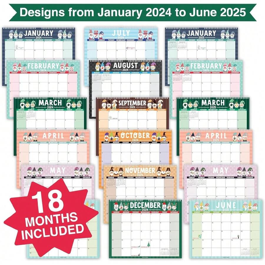Gnome Large Wall Calendar 2024 2025 18 Month Wall Calendar 2024 2025