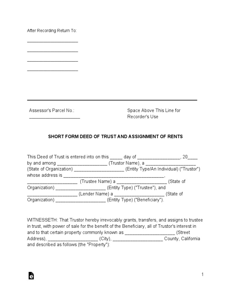 California Short Form Deed of Trust PDF Trust Law Real Estate Law