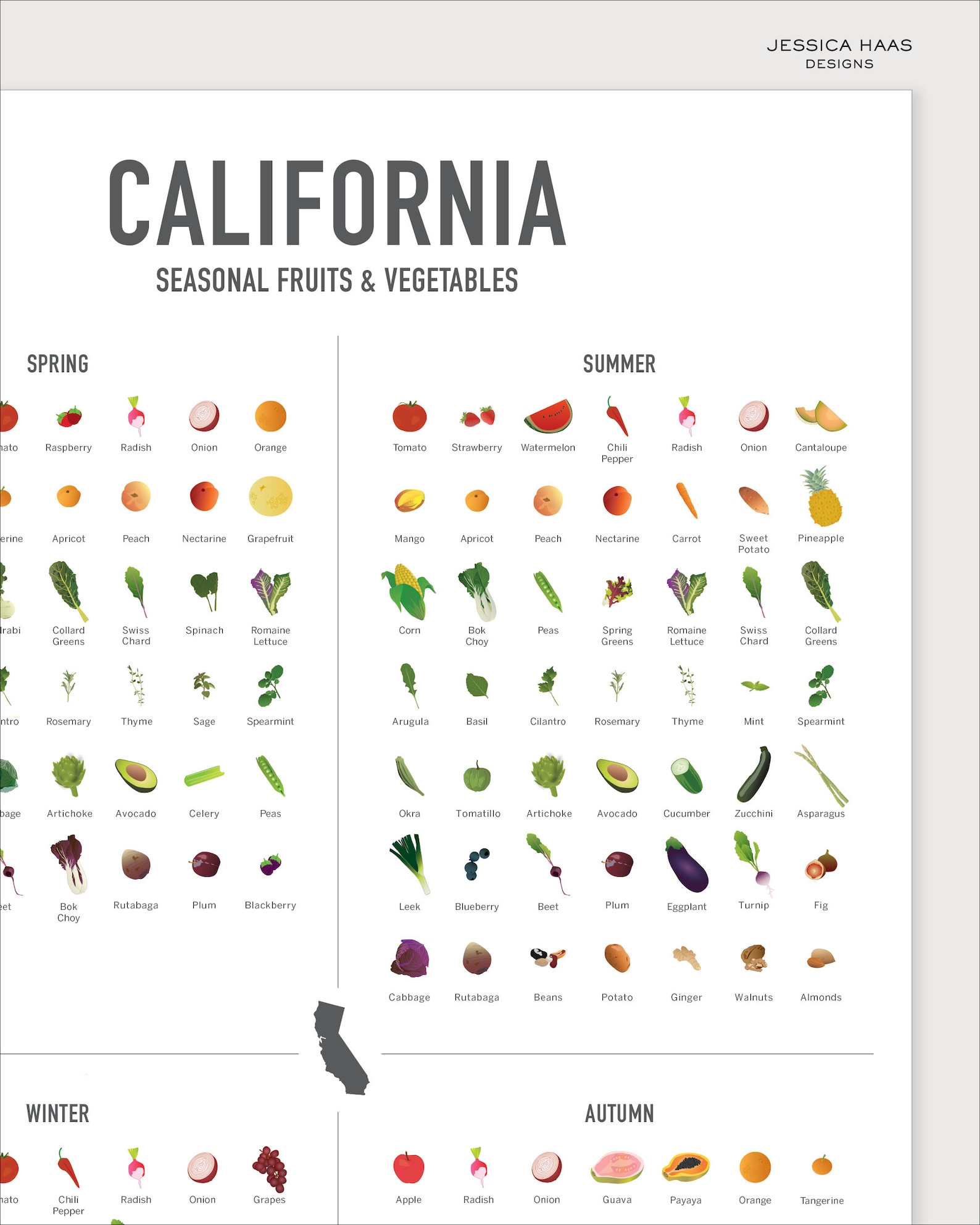 CALIFORNIA Four Seasons Poster Fruit and Vegetable Seasonal Food Chart