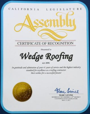SF Bay Area Roofing Company Receives California Legislature Recognition