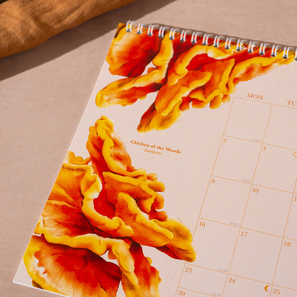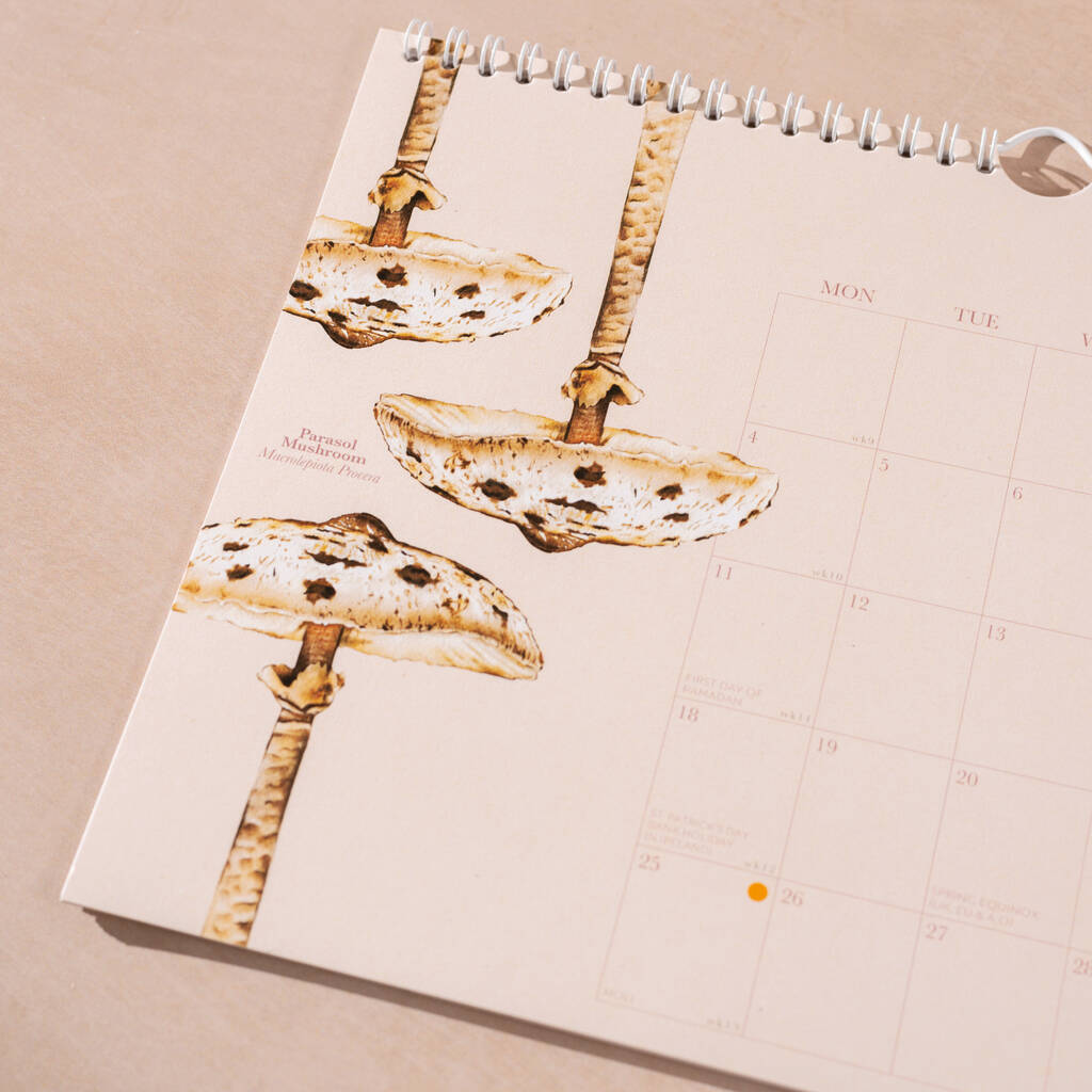 Mushroom wall calendar 2024 from watercolour paintings by Peter Thwaites