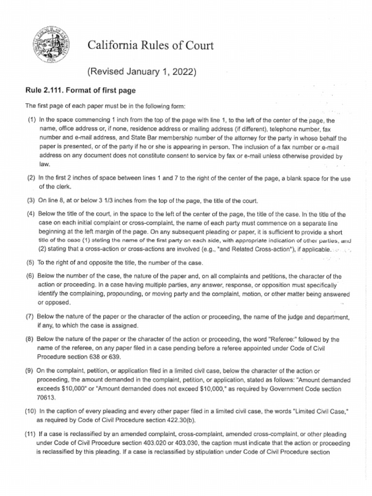 California Rules of Court 2 100 2 150 To Verify Current Court