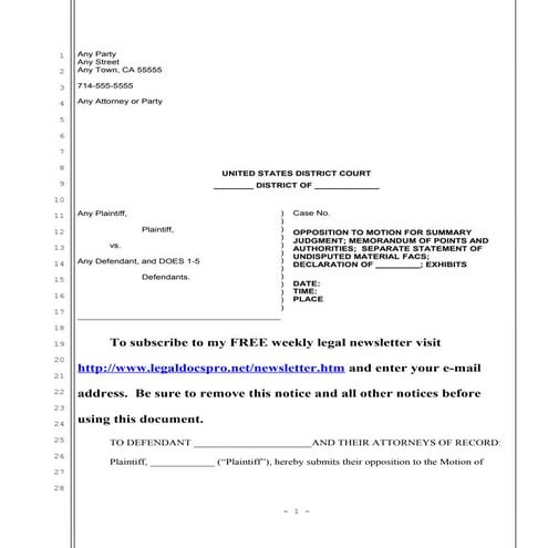Sample opposition to rule 56 motion in united states district court DOC