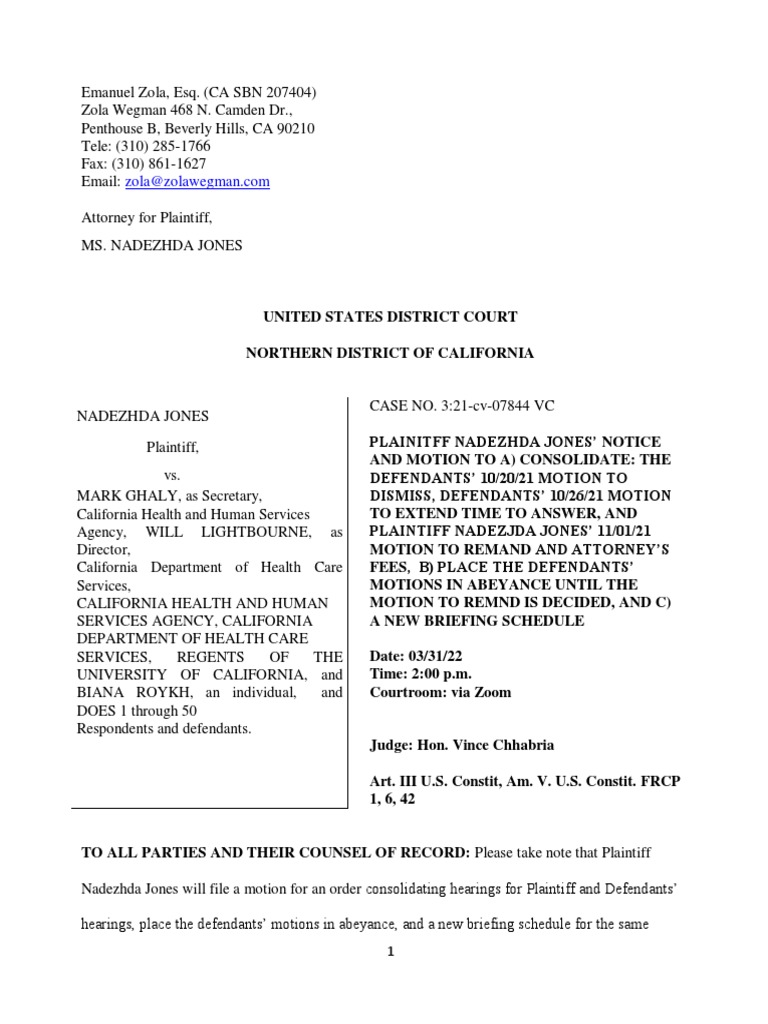 Motion To Consolidate Hearings Hold Motions in Abeyance and New