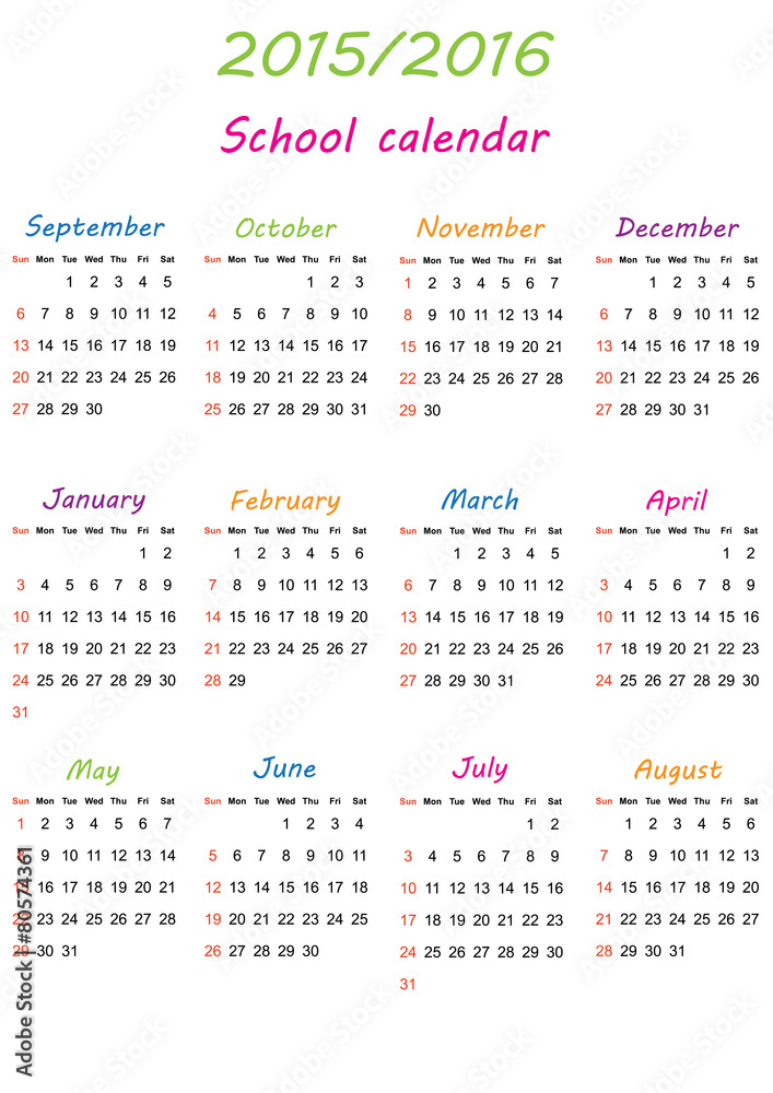 School calendar Stock Vector Adobe Stock