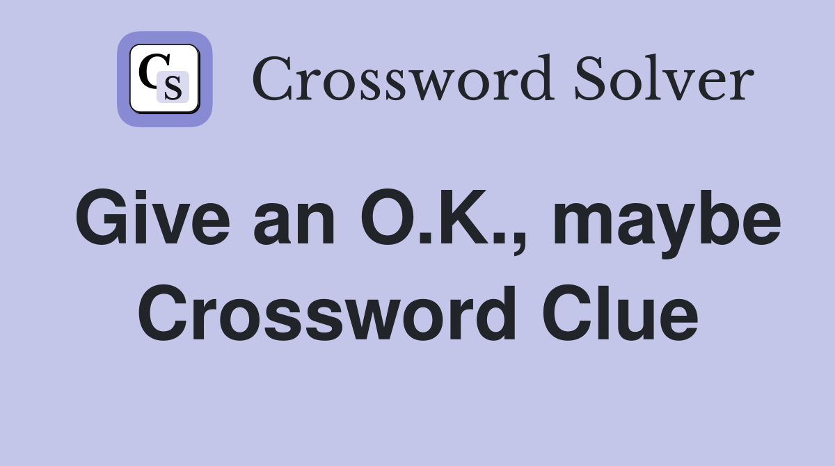 Give an O K maybe Crossword Clue Answers Crossword Solver
