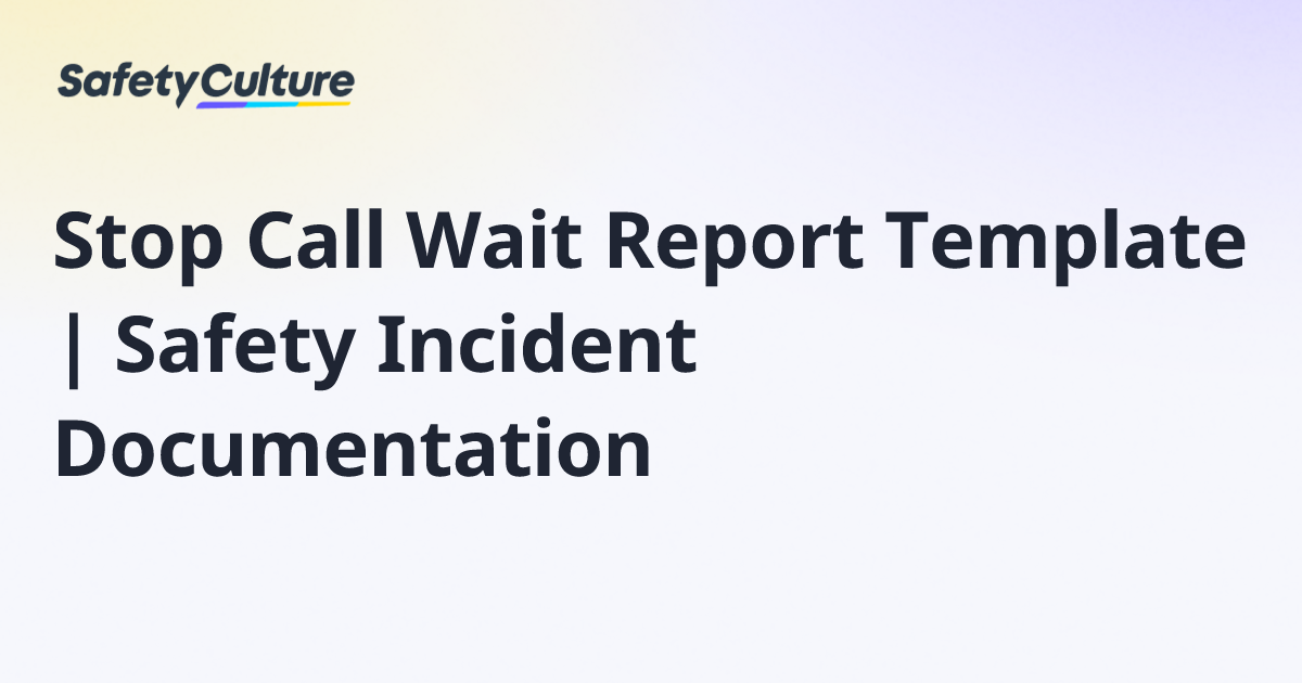 Stop Call Wait Report Template Safety Incident Documentation Free