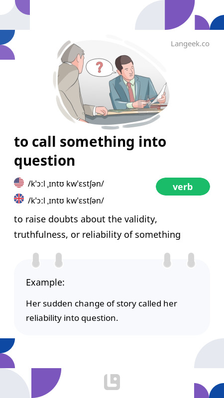 Definition Meaning of quot Call into question quot Picture Dictionary
