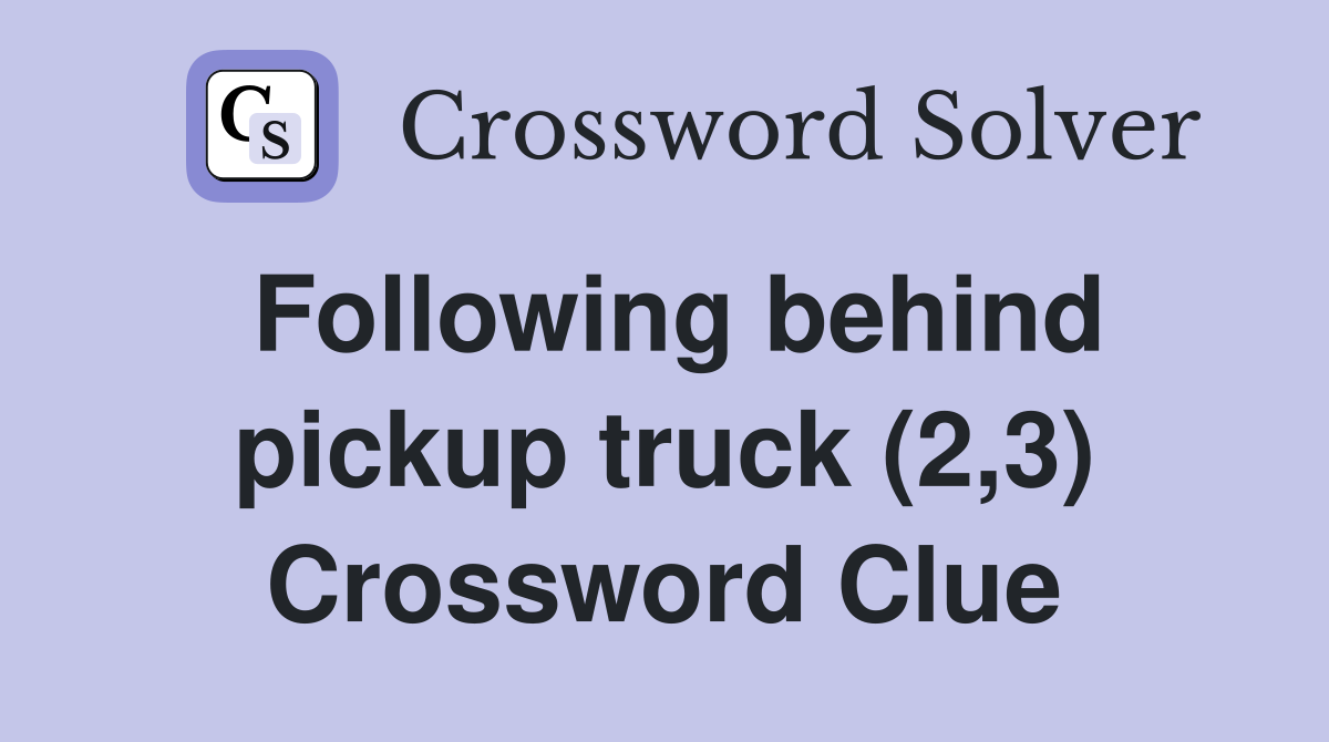 Following behind pickup truck (2 3) Crossword Clue Answers