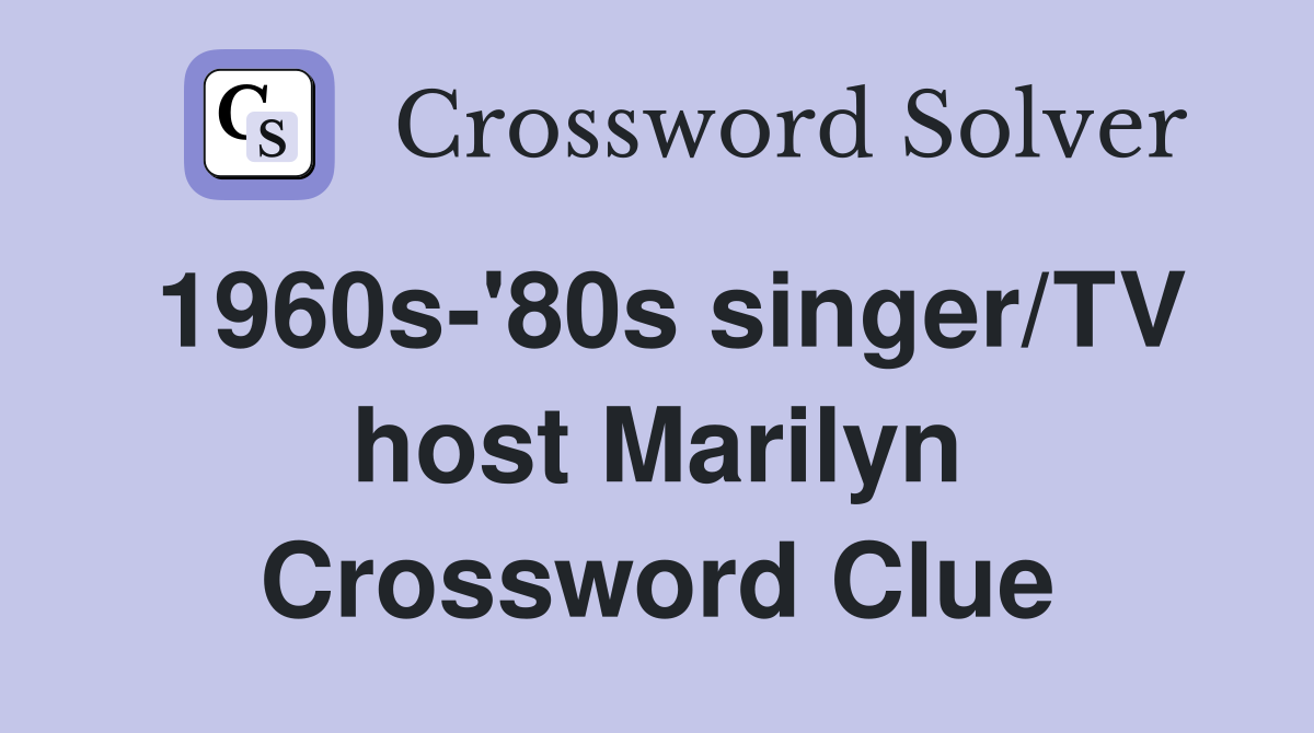 1960s #39 80s singer/TV host Marilyn Crossword Clue Answers Crossword