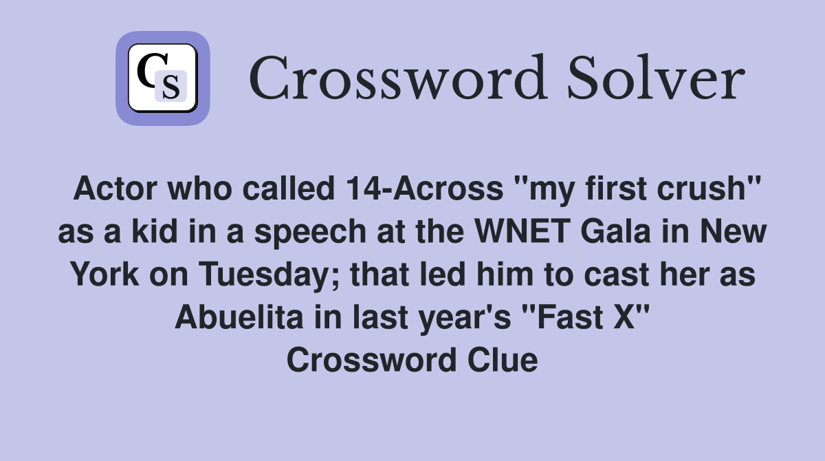 Actor who called 14 Across quot my first crush quot as a kid in a speech at the