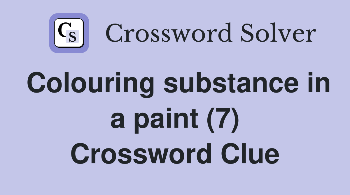 Colouring substance in a paint (7) Crossword Clue Answers Crossword