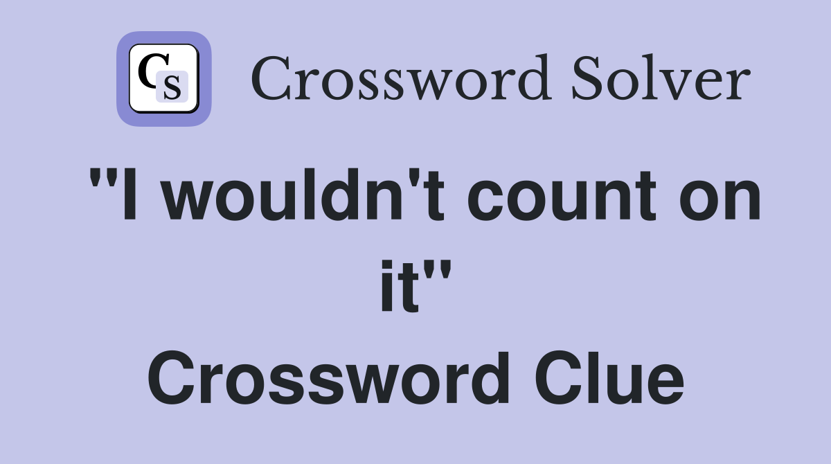 quot I wouldn #39 t count on it quot Crossword Clue Answers Crossword Solver