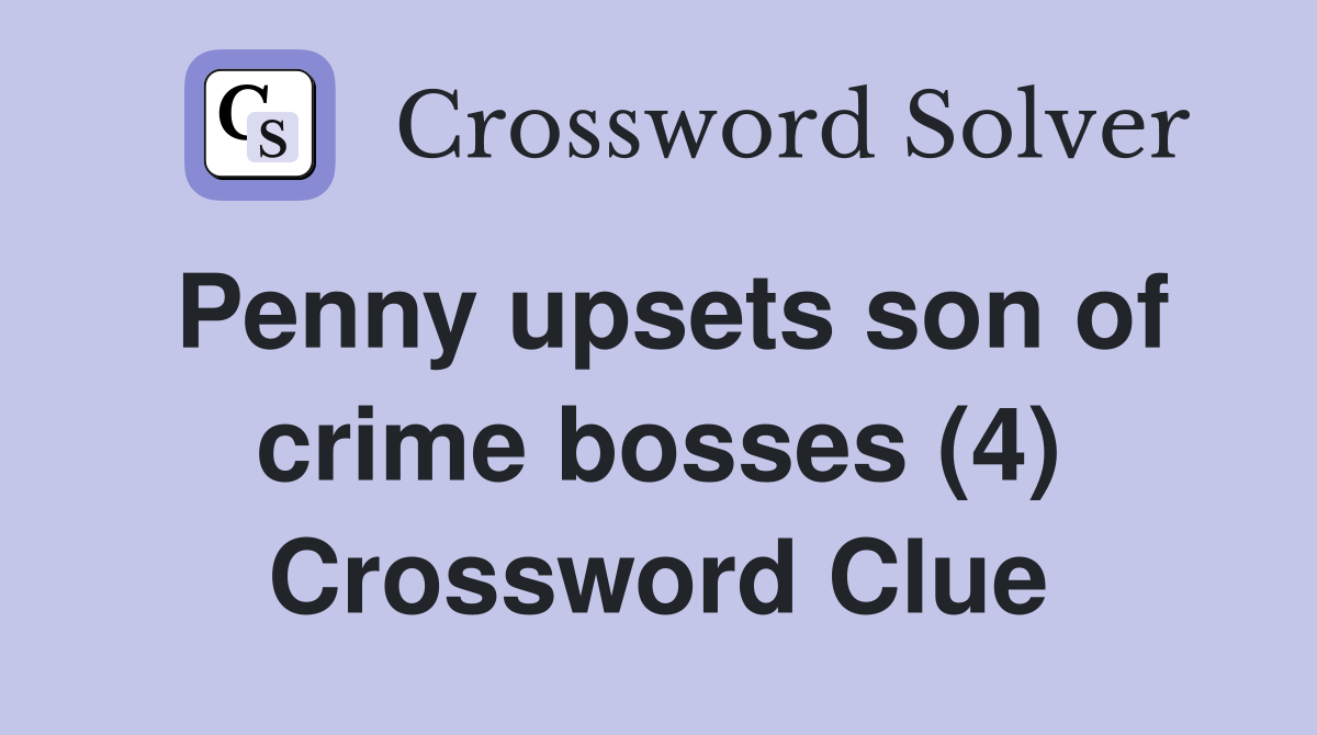 Penny upsets son of crime bosses (4) Crossword Clue Answers