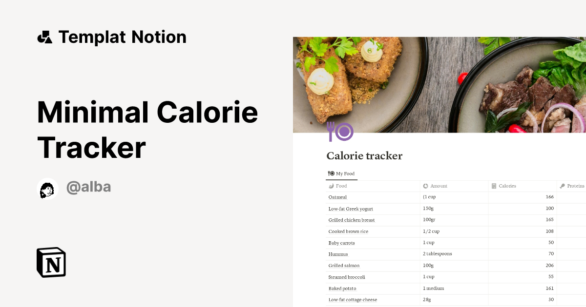 Minimal Calorie Tracker Templat oleh Alba Negrín Notion Marketplace