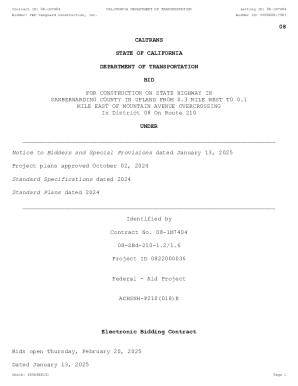 Caltrans Bid Calendar Fill Online Printable Fillable Blank pdfFiller