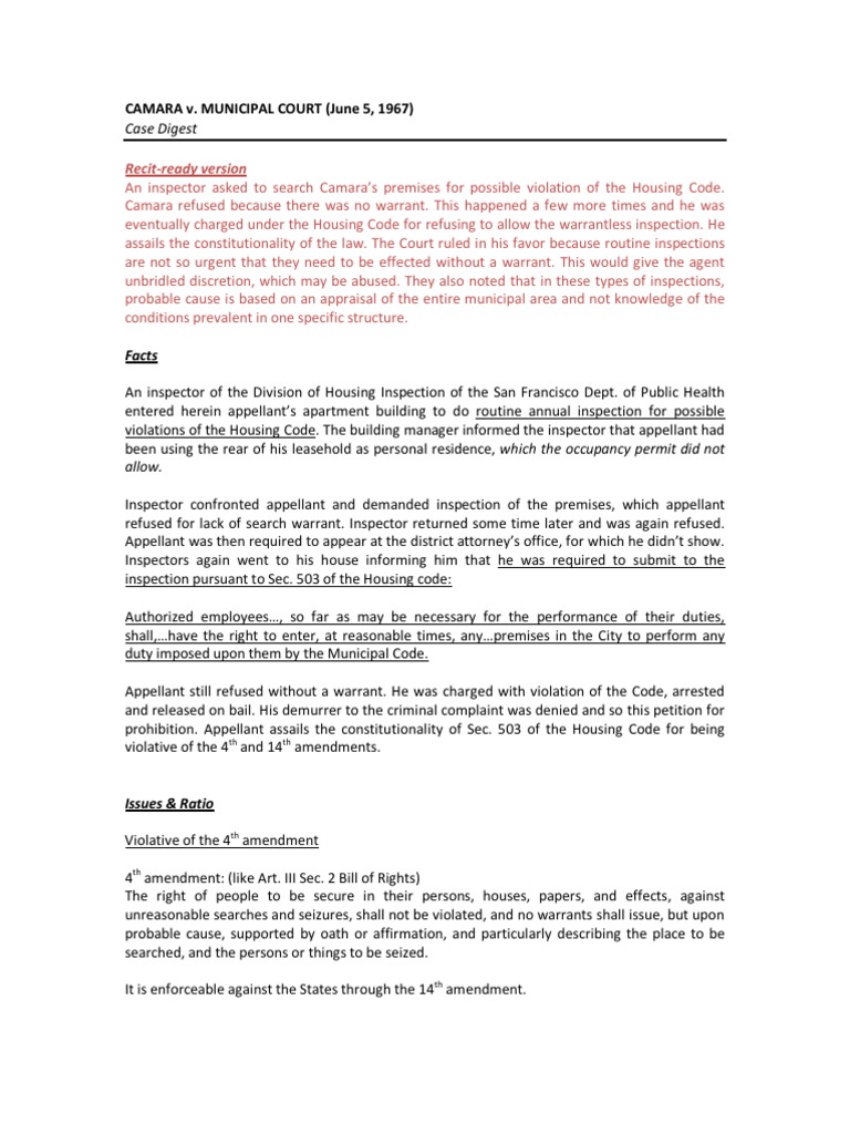 Camara v Municipal Court Camara v Municipal Court Week 5 Teamwork