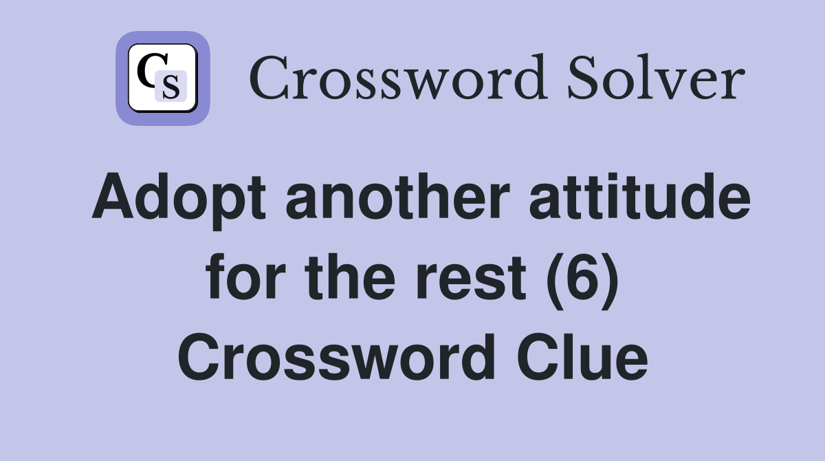 Adopt another attitude for the rest (6) Crossword Clue Answers