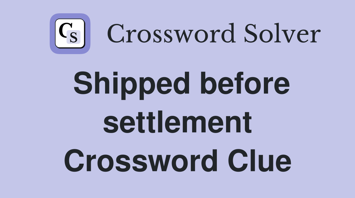 Shipped before settlement Crossword Clue Answers Crossword Solver