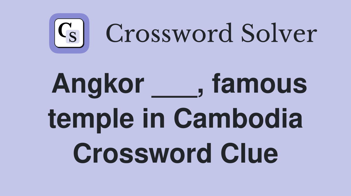 Angkor Wat s country Crossword Clue Answers Crossword Solver
