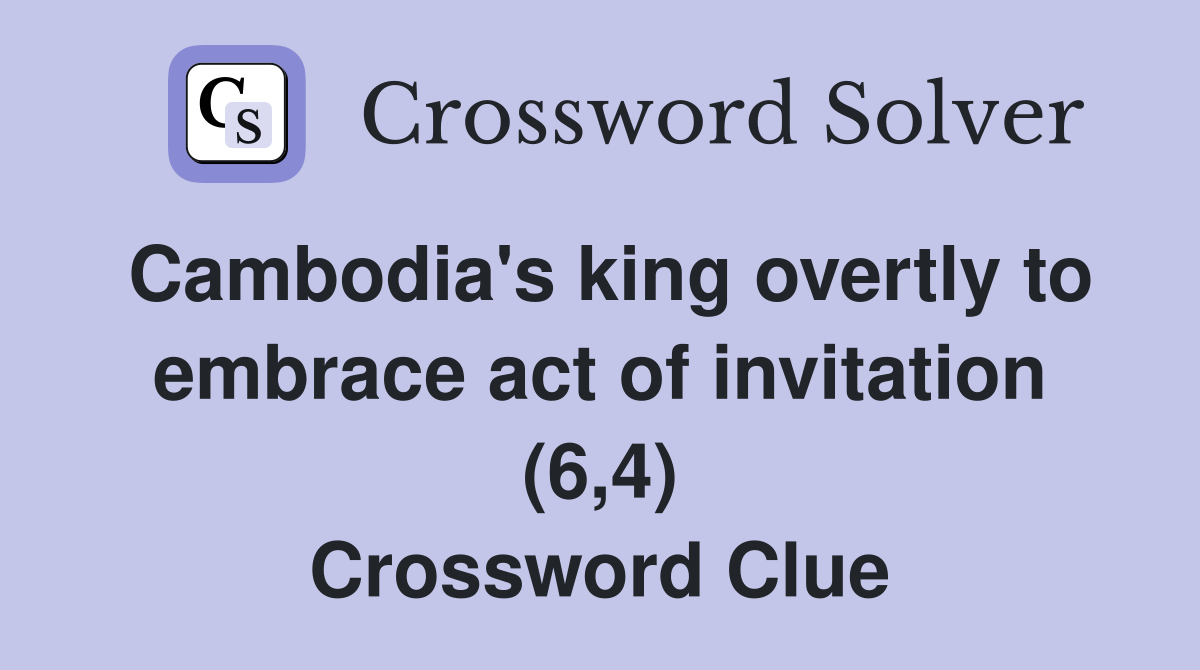 Cambodia s king overtly to embrace act of invitation (6 4) Crossword