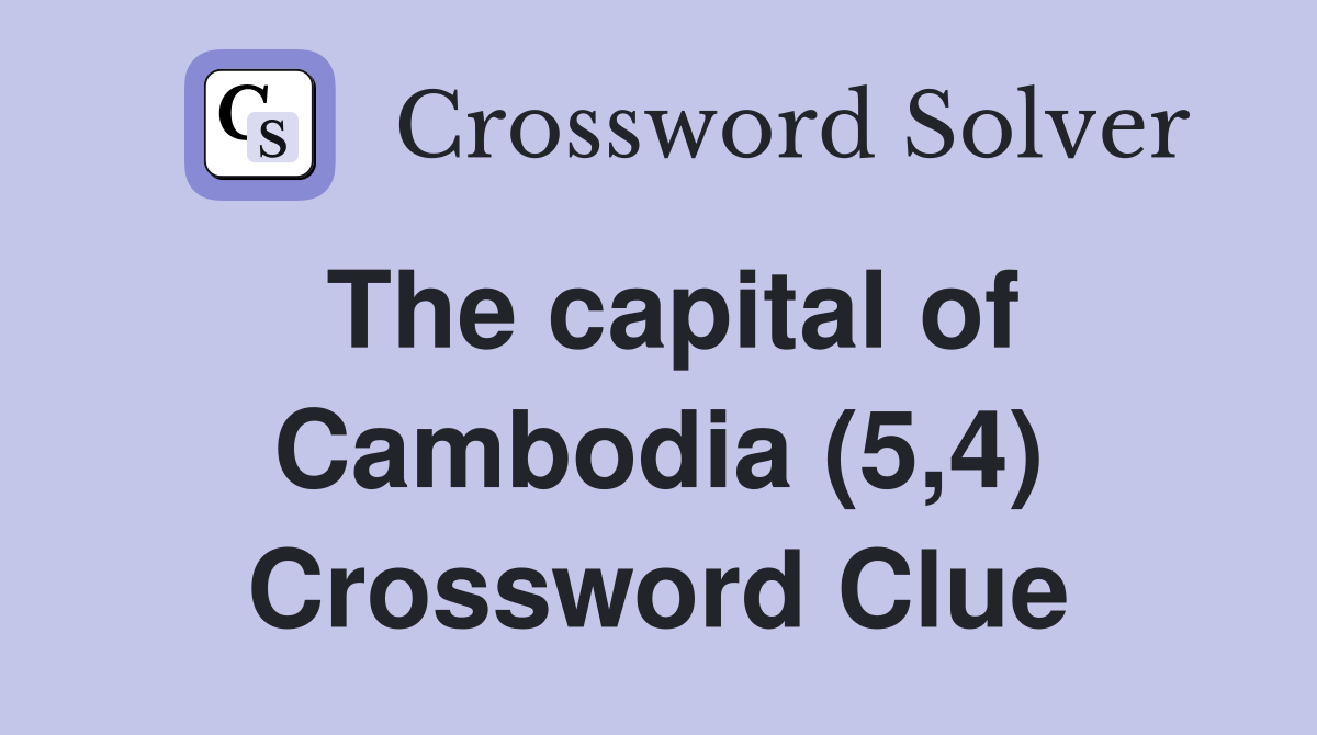 The capital of Cambodia (5 4) Crossword Clue Answers Crossword Solver