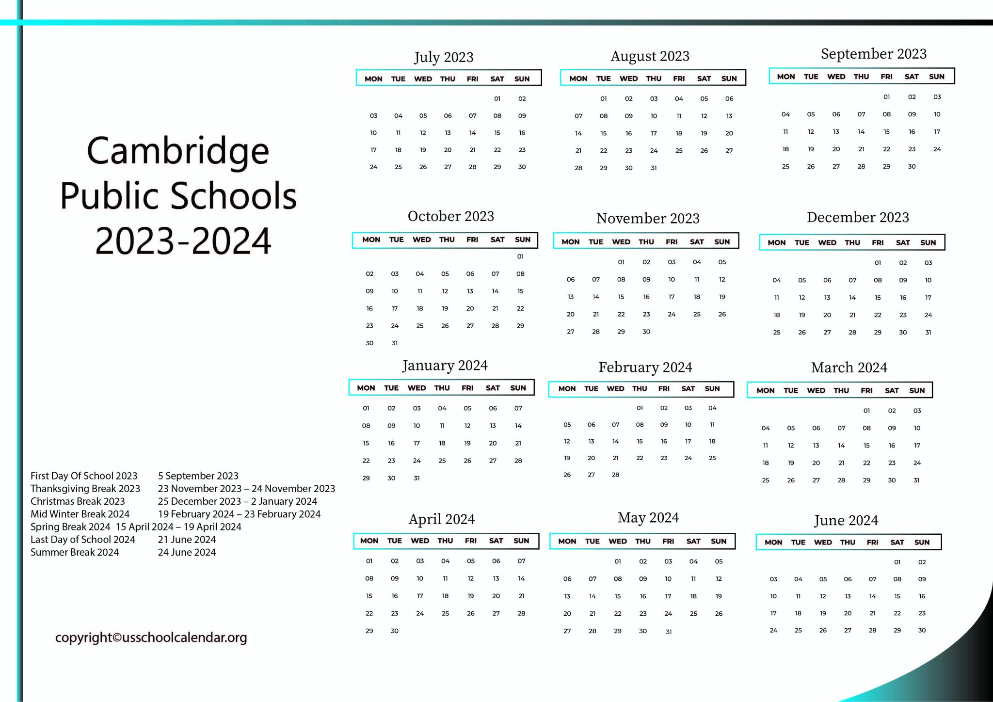 Cambridge Public Schools Calendar 2024 25 With Holidays