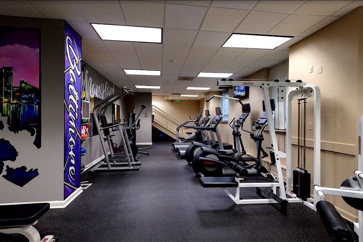 Workout room mural for Camden Court Apartment by Murals by Marshall