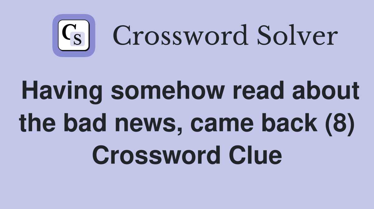Having somehow read about the bad news came back (8) Crossword Clue