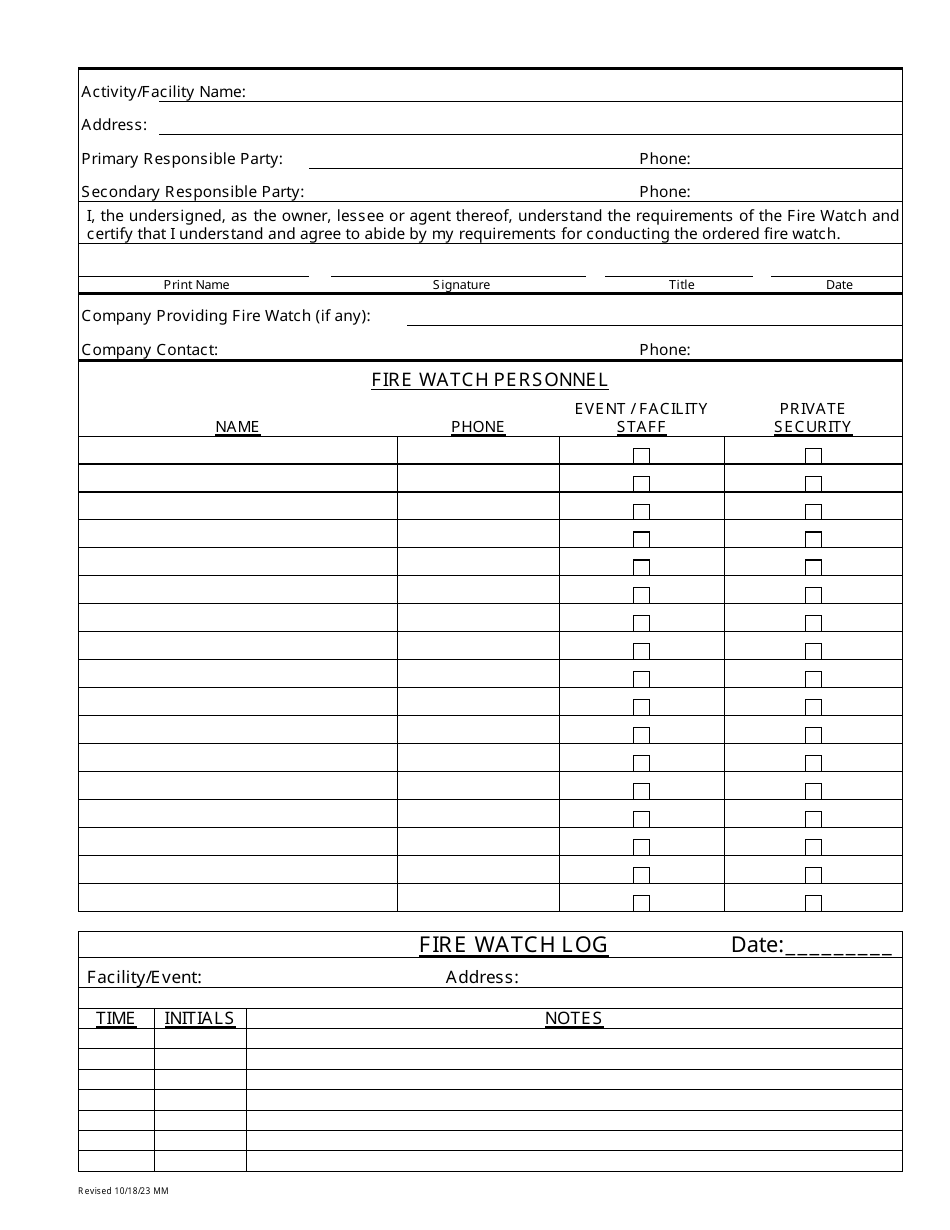 San Bernardino County California Fire Watch Package Fill Out Sign