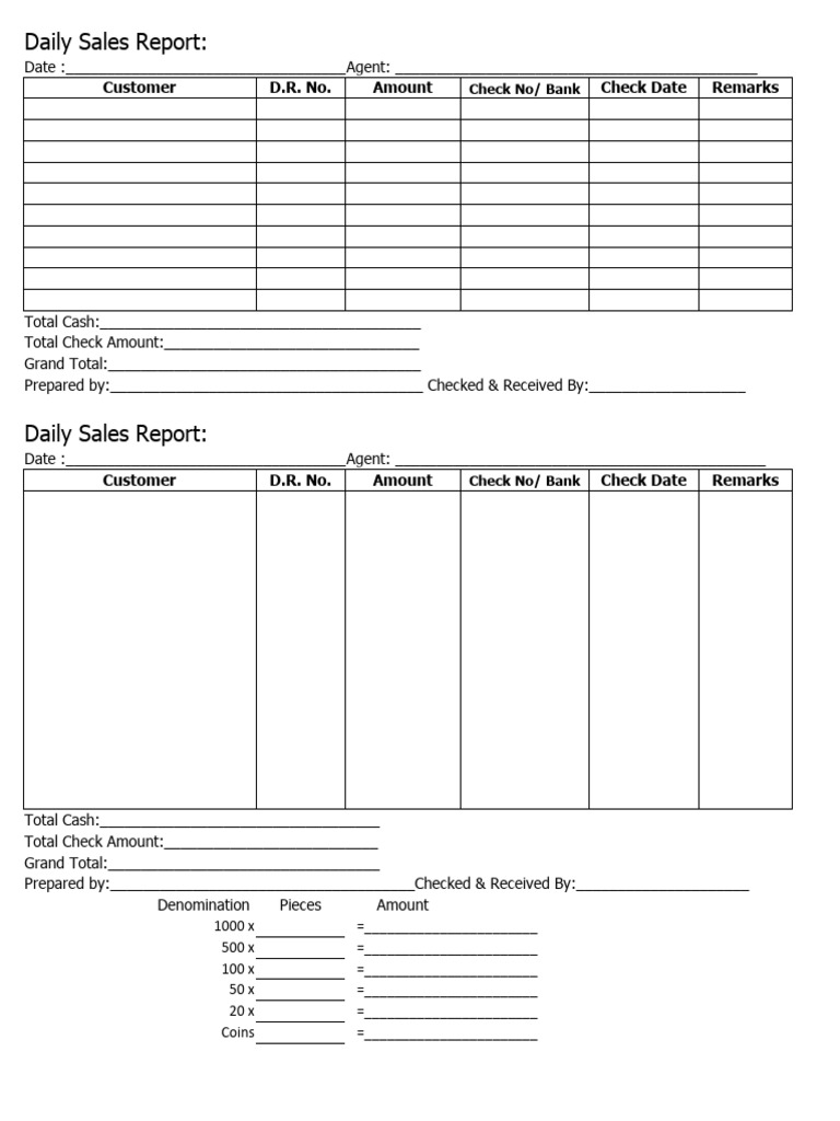 Daily Sales Report PDF Cash Currency