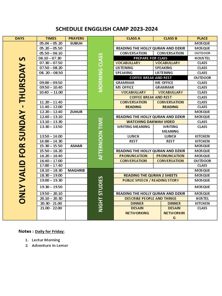 Jadwal English Camp PDF Mosque