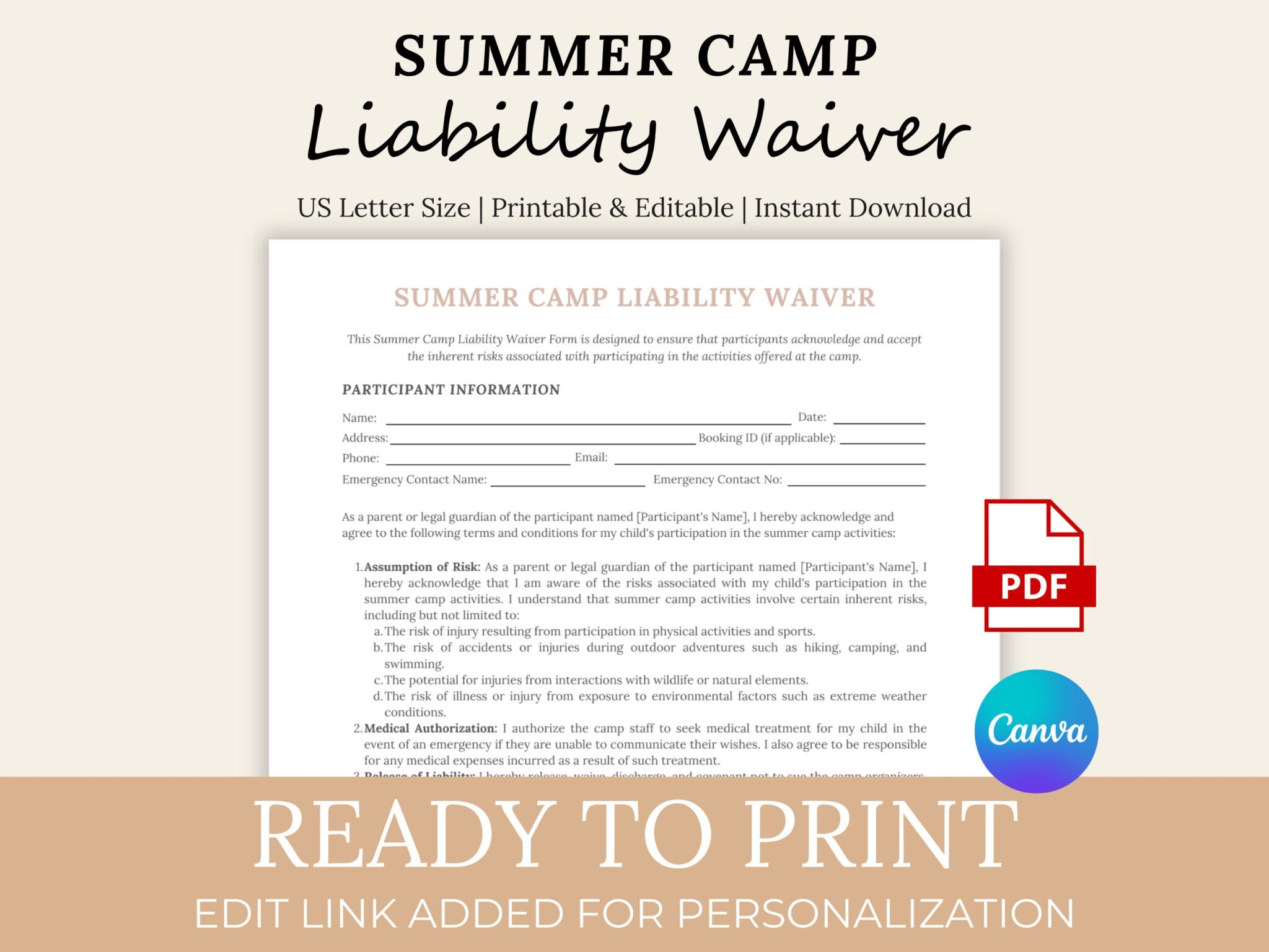 Summer Camp Waiver Template