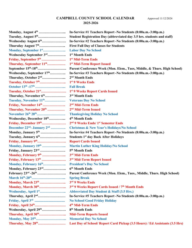Campbell County Schools Calendar