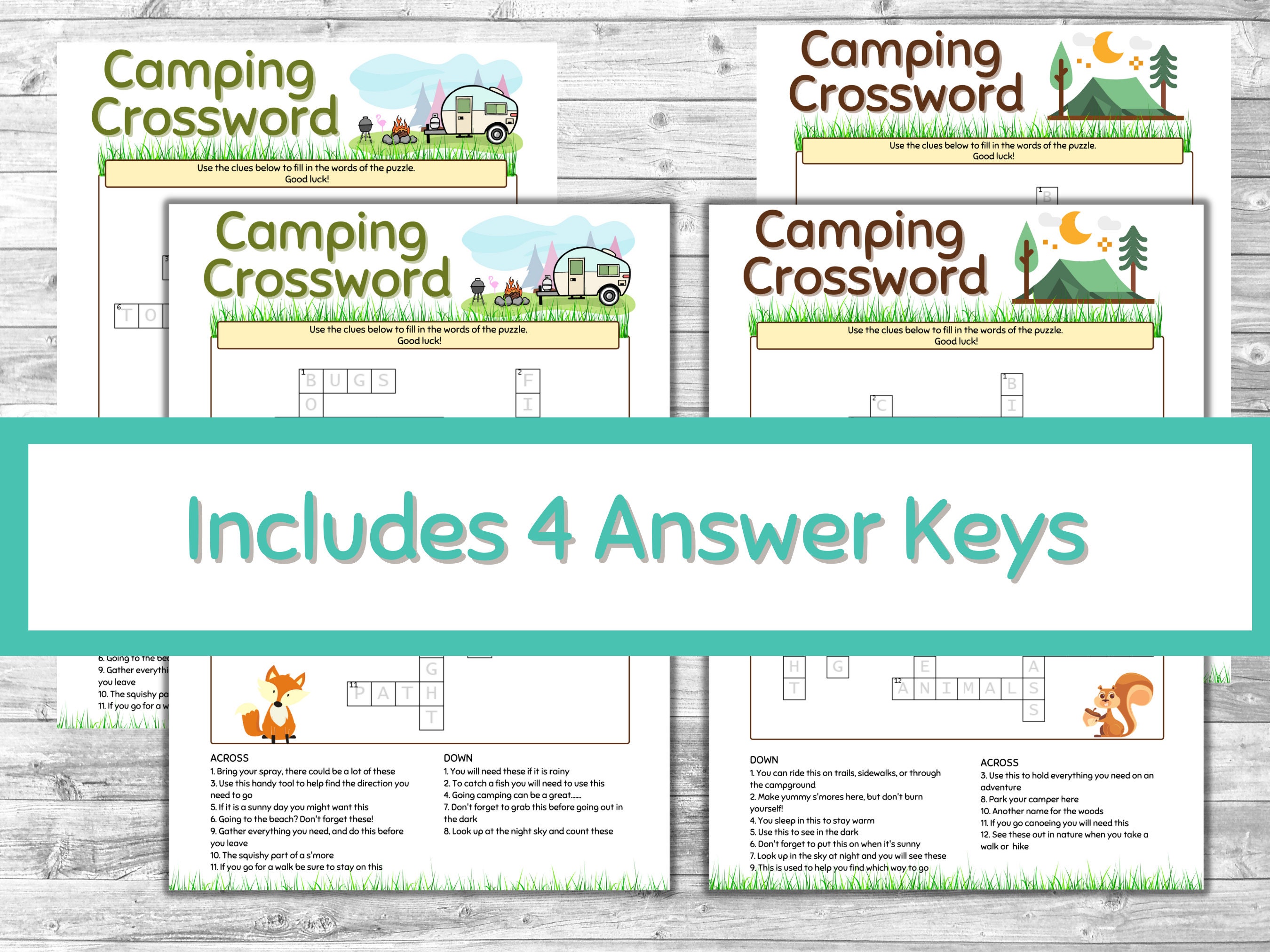 Camping Crossword Puzzle Printable (multi pack) Etsy