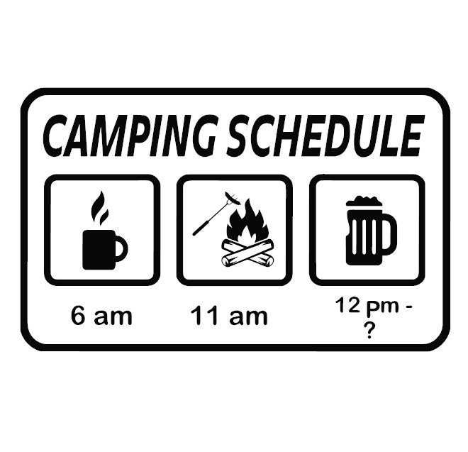 Camping Schedule Decal Multiple Colors Sizes Laptop phone window
