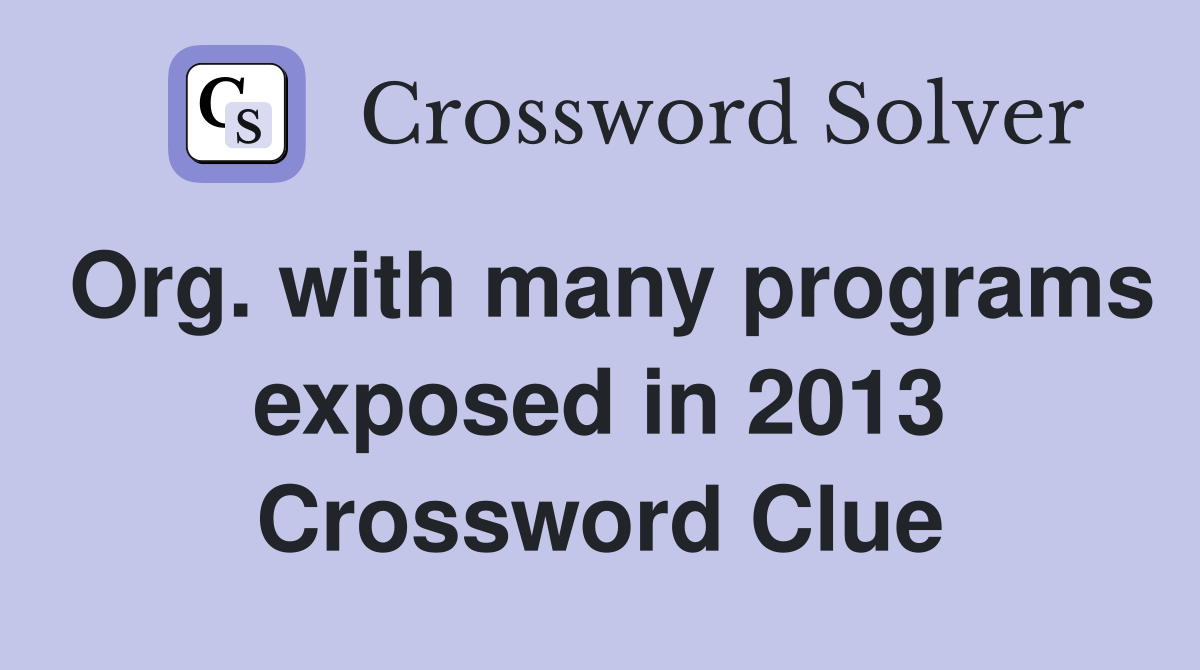 Org with many programs exposed in 2013 Crossword Clue Answers