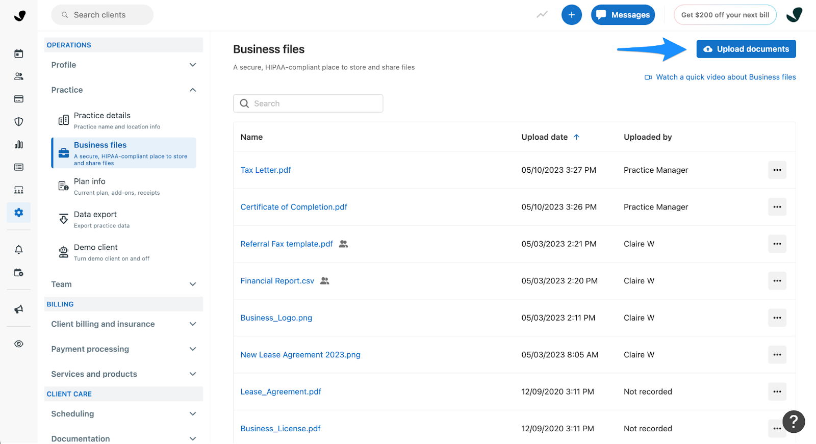 Storing client documentation and other items for imported clients