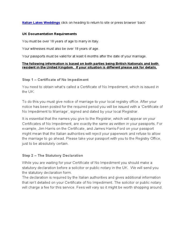Step 1 Certificate of No Impediment PDF Marriage Law Notary Public