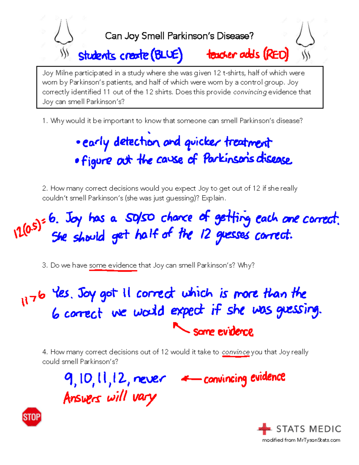 Can Joy Smell Parkinson s Disease? A Statistical Investigation (AP
