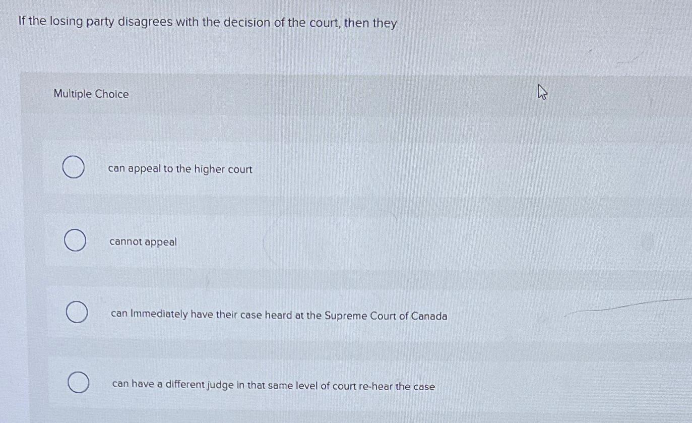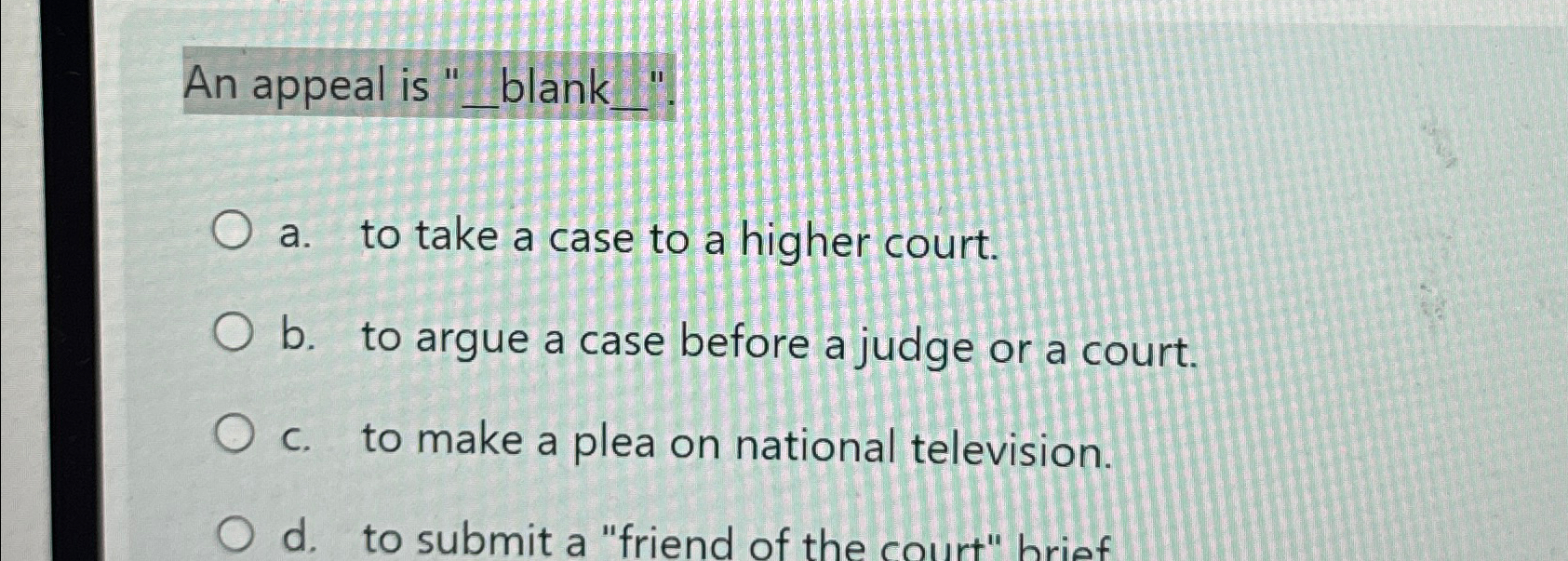 Solved An appeal is quot blank quot a to take a case to a Chegg com