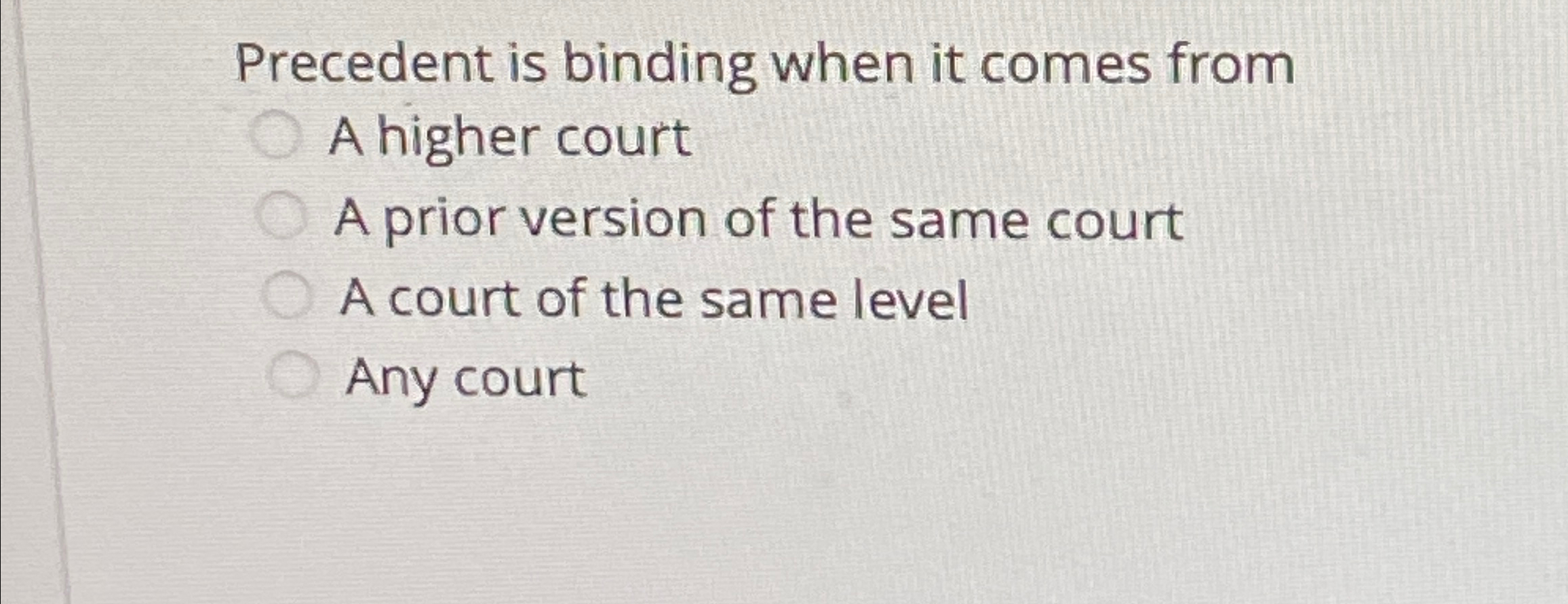 Solved 16 A court is obligated to follow the precedents of Chegg com