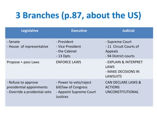 The Three Branches of Government 3 Branches of