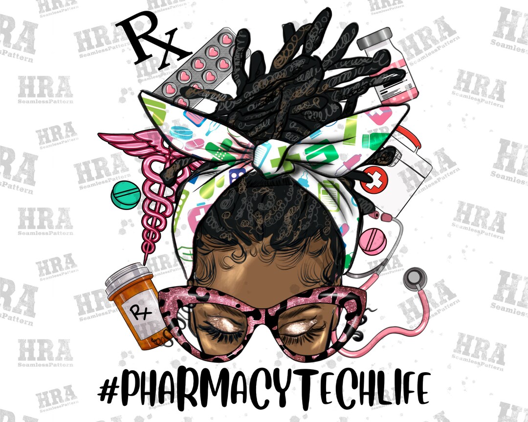 Afro Messy Bun Loc Hair Pharmacy Tech Life Png Sublimation Design